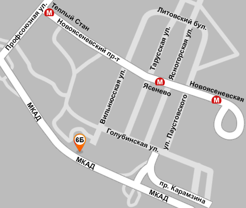От м. « Тёплый стан», первый вагон из центра, после турникета направо до конца и налево вверх. Затем садимся в автобус или маршрутку №647 до конечной остановки «Проезд Одоевского»